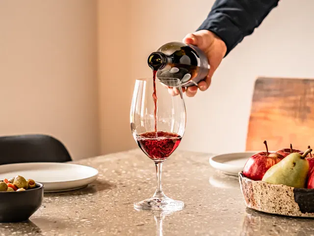 Copa de vino tinto o blanco seleccionado, con notas afrutadas y cuerpo equilibrado.